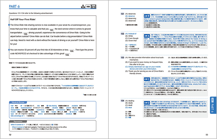 TOEIC指導のエキスパート講師陣による問題と解説が充実