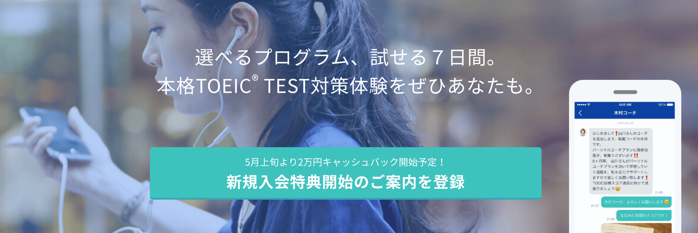 パーソナルコーチプランならめちゃめちゃTOEIC伸ばしたい人におすすめなんだね!